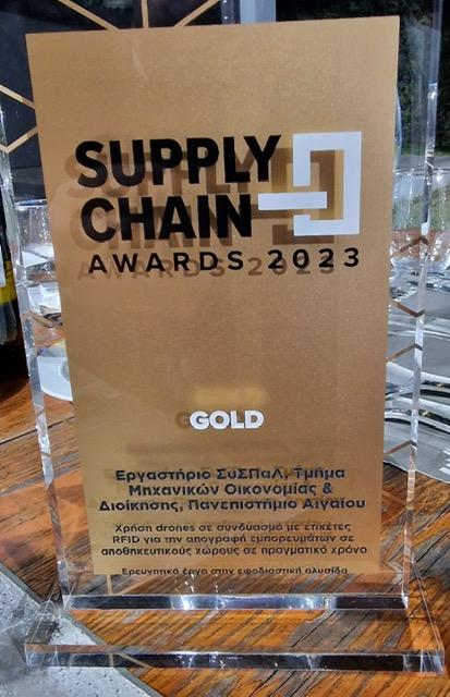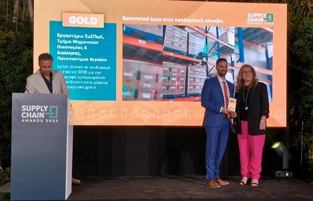 Στο πλαίσιο των βραβείων Supply Chain Awards 2023, βραβεύτηκε με Χρυσό βραβείο η έρευνα που εκπονήθηκε από τον Ν. Θωμαϊδη, Μεταπτυχιακό φοιτητή μέσω έρευνας και τον Γ. Τεπτερή, Υποψήφιο Διδάκτορα, αναφορικά με τη χρήση drones & ετικετών RFID για την απογραφή εμπορευμάτων σε πραγματικό χρόνο. Η εν λόγω έρευνα εκπονήθηκε στο Εργαστήριο Συστημάτων Σχεδιασμού Παραγωγής & Λειτουργιών, του Τμήματος Μηχανικών Οικονομίας και Διοίκησης του Παν. Αιγαίου στο πλαίσιο του Μεταπτυχιακού Προγράμματος Σπουδών μέσω έρευνας (MRes) και χρηματοδοτήθηκε από το πρόγραμμα Enirisst+ που αποτελεί τμήμα της εθνικής ερευνητικής υποδομής στην Ελλάδα στους τομείς της ναυτιλίας, της εφοδιαστικής αλυσίδας, των μεταφορών. Την ως άνω έρευνα υποστήριξαν επίσης οι: Δρ. Κ. Μαμάσης, Μεταδιδακτορικός ερευνητής & Λ. Αμυγδάλου μέλος ΕΤΕΠ. Επιστημονικοί υπεύθυνοι για την ως άνω έρευνα είναι οι: Καθ. Ι. Μίνης και Επικ. Καθηγητής Β. Ζεϊμπέκης.